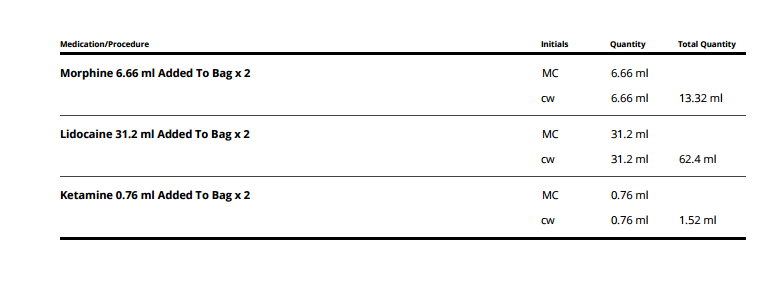 For clarity, we suggest creating a Route called Added to Bag. This way, we can avoid fluid additives being mistaken for fluid boluses on the Medical Record.