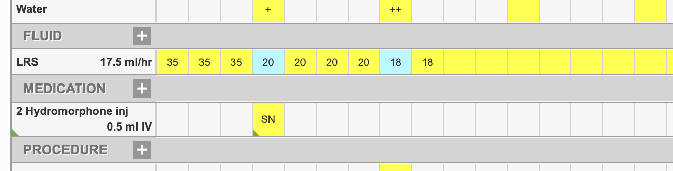 The fluid rate can be changed at any time during the patient's treatment. For example, if the dehydration status has changed for your patient, and you would like to increase or decrease the fluid rate, you can note this on the flowsheet. We recommend you discontinue the current fluid rate as described HERE, so that your flowsheet accurately reflects your patient care.